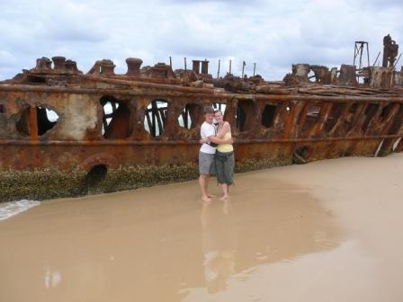 Dinsdag en woensdag hebben we een georganiseerde tour gedaan op Fraser Island, het grootste zandeiland ter wereld. We zaten in een heel toffe groep met reizigers van onze leeftijd. We hebben hard gelachen met een Canadees koppel en een Zweed. 's Nachts hebben we in een tent geslapen, maar met een houten vloer en echt bed! De douches en toiletten deden daarentegen wel weer aan scoutskamp denken. Fraser Island is geweldig mooi, met stranden-uit-de-boekjes en zeer mooie uitzichten. We hebben zelfs wilde Dingo's (=wilde honden) gezien, volgens de gids "de zuiverste Dingo's uit Australie". Weten we dat ook weeral. Ook hebben we (eindelijk) onze eerste wilde slang gezien, spijtig genoeg een niet-giftige. De gids was wel een speciaal iemand. Ik heb nooit geweten dat je met een 4x4-bus zo snel door de bossen kan rijden! We hebben een paar keer bijna vastgezeten in het zand, dan deden we een kwartier over vijf meter! Gewoon plankgas geven en heel traag vooruit bibberen met een motor die net niet overhit is. Het strand van Fraser Island is trouwens de hoofdweg van het eiland, wat best wel grappig is, aangezien daar ook de normale regels gelden (max 80km/h) en het tegelijkertijd een vliegveld is. Dan moet je als chauffeur wel opletten, hoor.