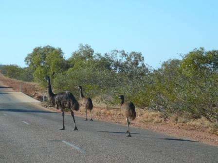 Amai! We hebben tijdens onze tweede maand rondreis nog heel veel wilde dieren gezien ! We hebben dolfijnen, emu's, krokodillen, pelikanen, kamelen en een populatie vliegen zo groot als Belgie tegengekomen !! De vliegen hier zijn 'bush vliegen', ze zijn op zoek naar de minste druppel vocht ! Als je dus uit je auto stapt, krijg je direct een laag vliegen op je verzeild ! En als die zich zouden gedragen zoals Belgische vliegen, geen probleem. Maar deze vliegen kruipen in je oren, mond, neus en tot in je ogen ! Die zijn ook helemaal niet bang van een hand waarmee je ze tracht weg te kloppen. Als er zo 5 vliegen in 1 van je gezichtholtes bevindt, moet je die dus echt uit je lijf plukken! Degoutant ! En foto's trekken in zo een omgeving is heel moeilijk, aangezien je altijd bezig bent die vliegen van je lijf te halen! (als je dus een foto ziet met een zwarte plek op de mond: een vlieg dus)