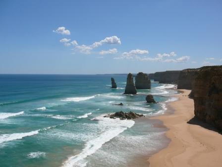 We hebben een dertienuur-durende tour gedaan, maar heel hard genoten van de Great Ocean Road. Het is een heel kronkelige weg naast de oceaan en heeft dus prachtige uitzichten. We hebben natuurlijk halt gemaakt aan de welbefaamde Twelve Apostles en dat terwijl de thermometer een temperatuur van 40º C aangaf! The Twelve Apostles (in het echt zijn er nog maar acht) waren heel mooi om te zien, precies een postkaartje als je daar zo staat.