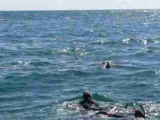 Dat hebben we vandaag dus gedaan en het was GEWELDIG! Het is echt een heel speciaal gevoel als je naast een flipper kunt zwemmen! We hebben zelfs een jong kalfje gezien van een week oud, dat was nog geen 30 cm! Superschattig!!! Het was echt een mega-cadeau, eentje om in te kaderen. Helaas is foto's nemen van actieve dolfijnen redelijk moeilijk, dus zullen jullie je inbeelding moeten gebruiken. Maar het is een absolute aanrader (als je ooit eens in Australië bent). Buiten het ijskoude water, dan. Wij hadden echt geen idee hoe koud het water hier kan zijn ...