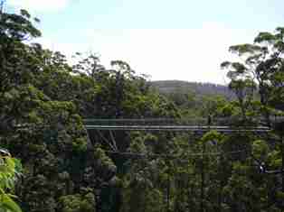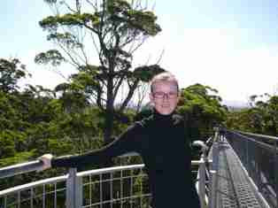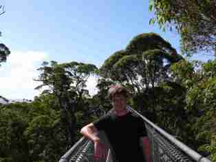 Een gekende place to be hier, is de Valley of the Giants. Herinner je de tekst over de tree top-wandeling in Lamington (20 hoge meters boven de grond), de wandeling waarvoor Ellen bedankte? Dat was peanuts tegenover wat we hier gedaan hebben. Zelfde principe, alleen hoger en mooier. En met hoger, bedoelen we ook echt hoger: 40 meter boven de begane grond! En dat over een rooster om het extra interessant te maken. De bomen groeiden dan nog meer dan twintig meter hoger. Naar beneden of boven kijken maakt dat niet veel uit, klein voel je je toch! En deze keer was Ellen wel meegegaan. Ze heeft zelfs naar beneden gekeken ! Wel per ongeluk, maar toch.