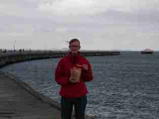 Esperance is een heel mooi stadje, bijna paradijselijk! Wondermooie stranden en nationale parken! Spijtig genoeg hebben we daar slecht weer gehad! Het waren echt Belgische temperaturen! 17 Graden, regen, wind! We hebben ons dan maar echt Belgisch gedragen en een zakje friet al wandelend op de jetty opgegeten! Spijtig genoeg geen Belgische friet: te vet, te zout en geen mayonaise.