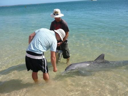 De dolfijnen van Monkey Mia zijn een ware belevenis, ze worden in de voormiddag een beetje gevoed (niet genoeg om van te overleven). Je gaat kniediep in het water staan en wacht tot de dolfijnen nieuwsgierig komen kijken. Al snel zijn er een negental dolfijnen, waaronder een kalfje van een maand, die tot vlak voor uw voeten komen zwemmen! Het water is heerlijk helder, dus geen problemen om de dolfijnen uitgebreid te bezichtigen!