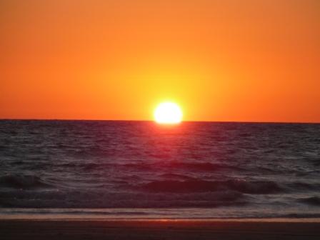In WA kan men genieten van de mooiste zonsondergangen ter wereld! De zon gaat hier onder om 17.15 uur, heel vroeg dus. Het is heel mooi om de zon te zien verdwijnen in de oceaan. We hebben geteld hoe kort dit fenomeen duurt, welgeteld 105 seconden! Vooral Broome is gekend voor hele mooie zonsondergangen, dus we zijn elke dag ergens anders naar de romantische zonsondergang gaan kijken!