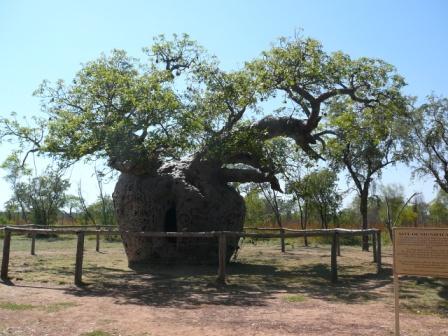 Voila,dit is dus een foto van een boabboom. De leeftijd wordt geschat op 1500 jaar! Deze boom werd vroeger gebruikt als een prison-tree, waar Aboriginals in een kring rond deze boom geketend werden.