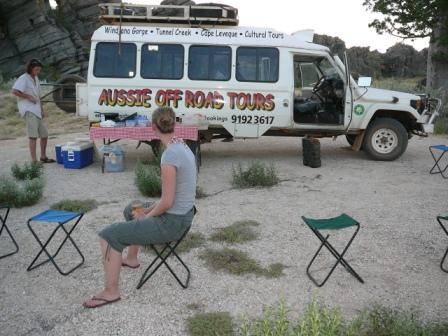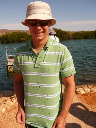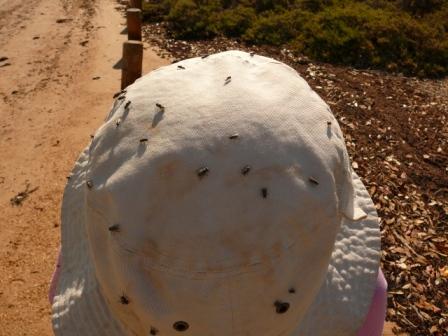Amai! We hebben tijdens onze tweede maand rondreis nog heel veel wilde dieren gezien ! We hebben dolfijnen, emu's, krokodillen, pelikanen, kamelen en een populatie vliegen zo groot als Belgie tegengekomen !! De vliegen hier zijn 'bush vliegen', ze zijn op zoek naar de minste druppel vocht ! Als je dus uit je auto stapt, krijg je direct een laag vliegen op je verzeild ! En als die zich zouden gedragen zoals Belgische vliegen, geen probleem. Maar deze vliegen kruipen in je oren, mond, neus en tot in je ogen ! Die zijn ook helemaal niet bang van een hand waarmee je ze tracht weg te kloppen. Als er zo 5 vliegen in 1 van je gezichtholtes bevindt, moet je die dus echt uit je lijf plukken! Degoutant ! En foto's trekken in zo een omgeving is heel moeilijk, aangezien je altijd bezig bent die vliegen van je lijf te halen! (als je dus een foto ziet met een zwarte plek op de mond: een vlieg dus)