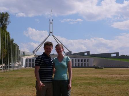 Na een 4 uur lange bustrip komen we aan in een verschrikkelijk hete, zonoverstralende hoofdstad; Can'bra. Maar die stad werd al gauw een claustrofobisch dorpje voor ons. Deze hoofdstad is niet meer dan "de stad" waar de regering zich nestelt. We hebben een bezoekje gebracht aan enkele musea en regeringsgebouwen. Neen, een citytrip hoef je naar deze stad niet te doen. Er was bijna geen verkeer, geen kat op straat, en de 3 winkeltjes aanwezig gesloten om 17 u !! Man man, wat moesten we wennen aan dat gevoel. In SYD worden we elke dag bijna vertrappeld aan het perron, altijd en overal horden mensen, overal verkeer, altijd ergens een sirene, alles dag en nacht open, steeds iets te beleven! Na een bezoekje aan die dode stad, werd het ons duidelijk dat we ons al heel goed thuis voelen in SYD. Het was een verademing om van de bus te stappen en terug in de massa's mensen op te kunnen gaan.