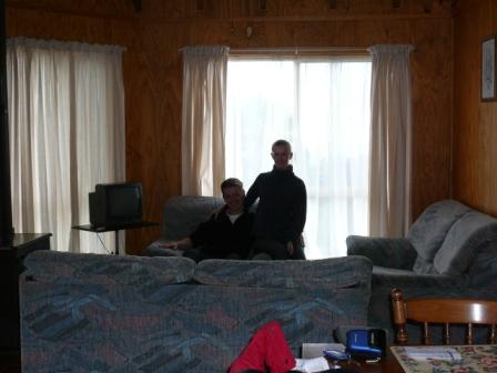 's Avonds hebben we in een gezellig mini-challetje overnacht in the middle of nowhere, heel mooi gelegen, midden in overweldigende natuur! Dat kunnen jullie jullie niet voorstellen ! Wij hebben nog nooit zulke stilte kunnen ervaren als daar! Nergens, niet thuis of ergens anders op vakantie! Absolute stilte, best een rare gewenning, 'serenity' noemen ze het hier. 's Avonds heeft GI JOE zich nog tot kok ontpopt en ons op een barbie (=bbq) getrakteerd. Wij hadden geen grammetje fut meer in ons lichaam, zelfs de vork naar onze mond brengen was al zwaar genoeg!