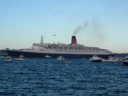 Deze week is de gigantische Queen Mary II hier aangemeerd, het grootste cruiseschip ter wereld. Te groot om onder Harbour Bridge aan de Opera House te kunnen en te groot om aan de normale cruiseschipsteiger aan te meren. 's Avonds kwam de Queen Elizabeth II aan en het was van WW2 geleden dat deze samen in de stad waren (toen waren het wel oorlogsschepen). Elke boot in de stad was uitgevaren om deze te begroeten. De ferries leken maar klein naast deze mastodonten. Reken daarbij nog een dozijn helicopters die rondcirkelden en je kan je misschien wel voorstellen wat voor een drukte dat geweest moet zijn! Er waren wel 4.000 Aussie's afgezakt tot de harbour! 's Avonds, na zonsondergang, was er een gigantisch vuurwerk, een kwartier lang, dat was heel mooi. Sydney was één verkeerschaos omdat die 4.000 mensen ineens allemaal op hetzelfde moment naar huis wilden. Een ticketje voor een wereldreis van 81 dagen met QM2 kost rond de 500.000 dollar!